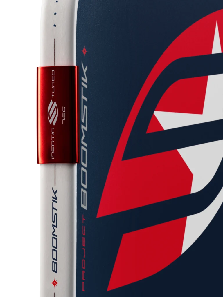 Project Boomstik also introduces the MOI Tuning System — a new paddle technology that delivers elite performance with a maximum sweet spot and balance, right out of the box. It’s an overall design approach that includes a semi-permanent perimeter weighting solution that balances mass distribution with precision-engineered weights clamped to the edge guard. By putting the weight exactly where we want it — shifting mass toward the outer regions of the paddle and increasing the moment of inertia — it stabilizes the paddle during off-center hits. The result is clear: a larger and more forgiving sweet spot to help you get more balls over the net.